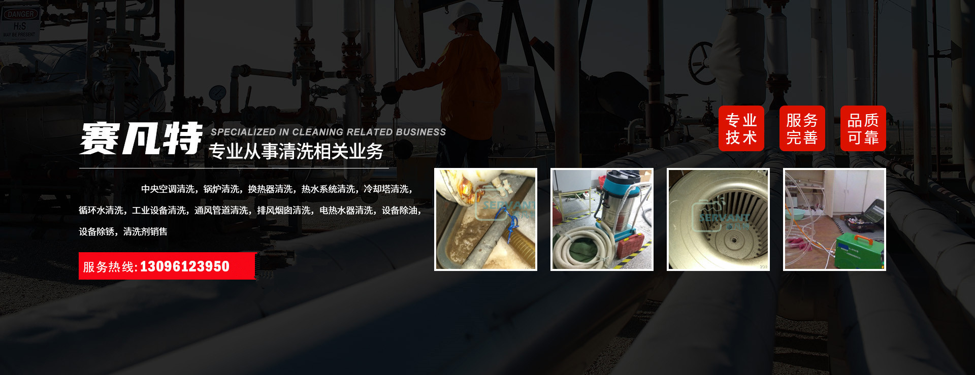 工業(yè)清洗工業(yè)制冷、供熱設(shè)備、各種儲罐、通水設(shè)備、鍋爐、循環(huán)水水處理與水質(zhì)管理,冷卻塔、風(fēng)管、工業(yè)排風(fēng)煙囪清洗消毒,凍庫制冷設(shè)備、風(fēng)